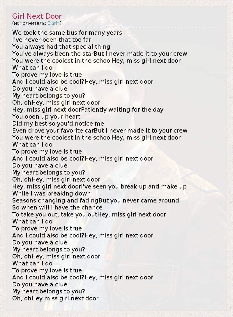 А как ты думаешь, о чем песня "Girl Next Door" ?