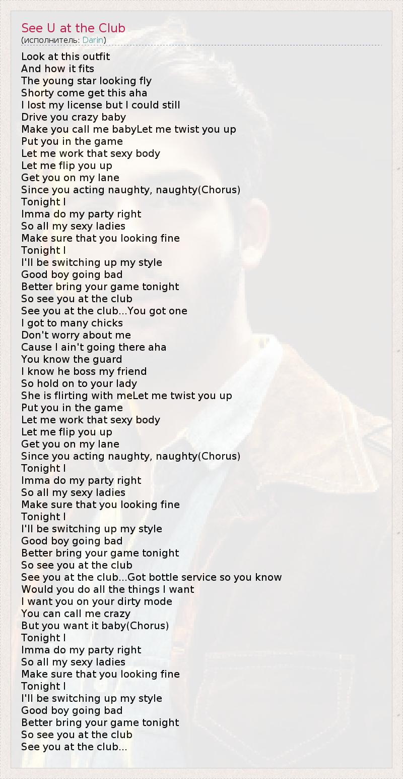 А как ты думаешь, о чем песня "See U at the Club" ?
