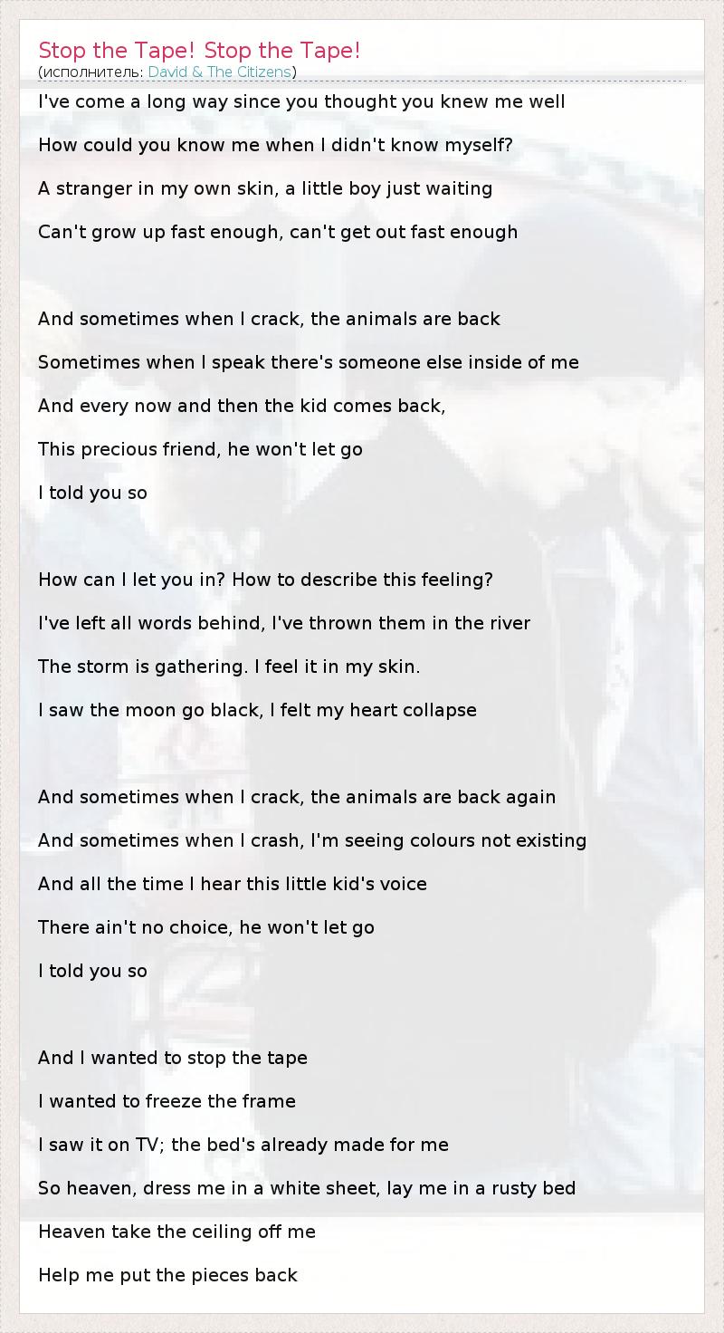 А как ты думаешь, о чем песня "Stop the Tape! Stop the Tape!" ?