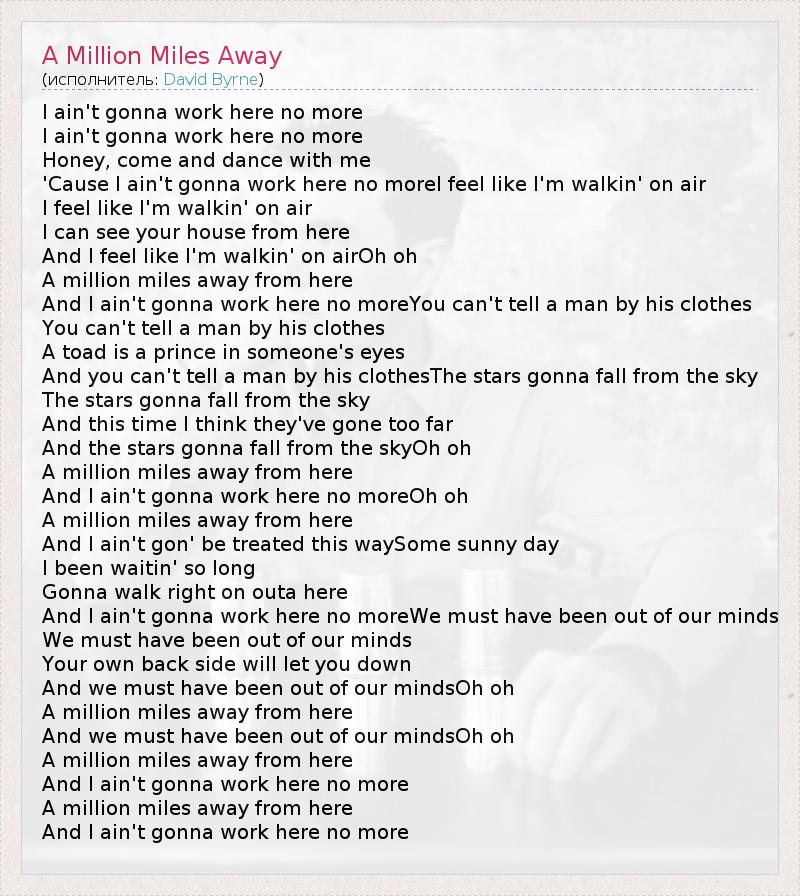 А как ты думаешь, о чем песня "A Million Miles Away" ?