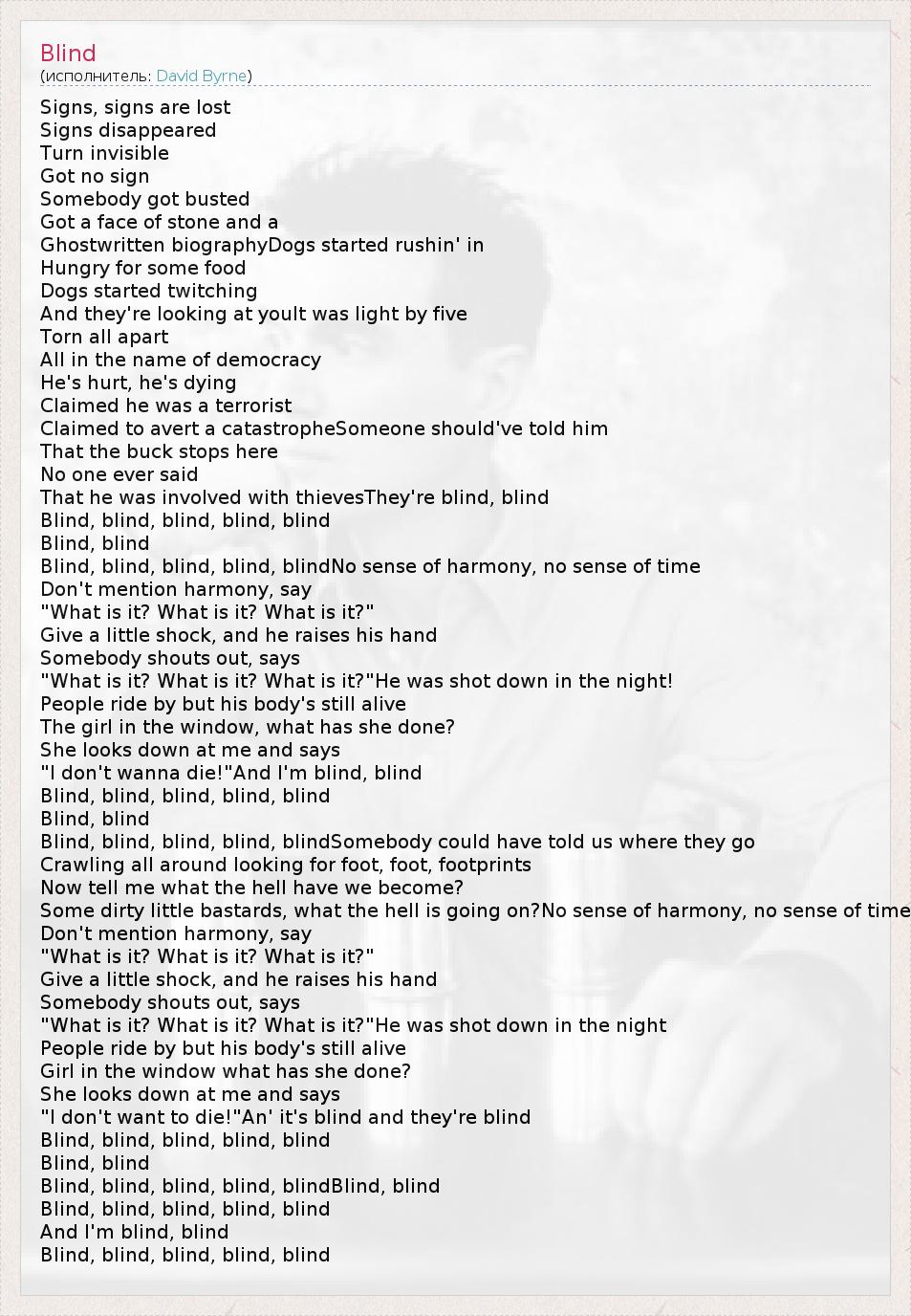 А как ты думаешь, о чем песня "Blind" ?