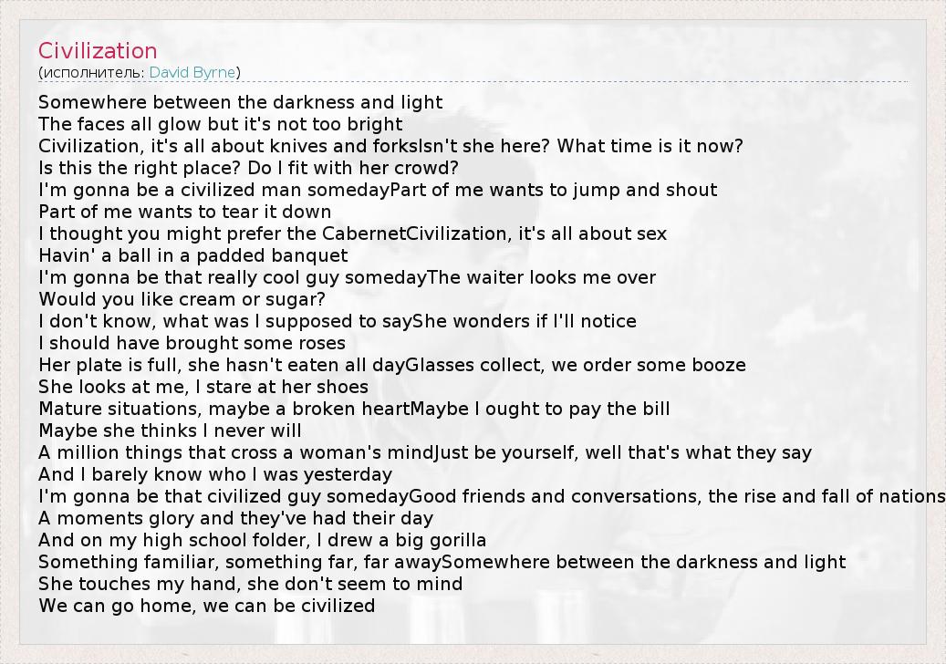 I'm gonna be a civilized man somedayPart of me wants to jump and shout
