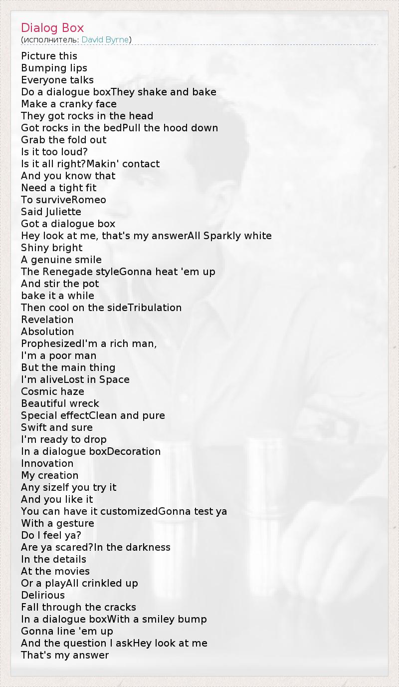 А как ты думаешь, о чем песня "Dialog Box" ?