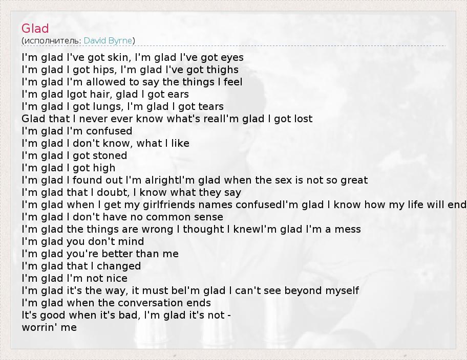 I'm glad I found out I'm alrightI'm glad when the sex is not so great