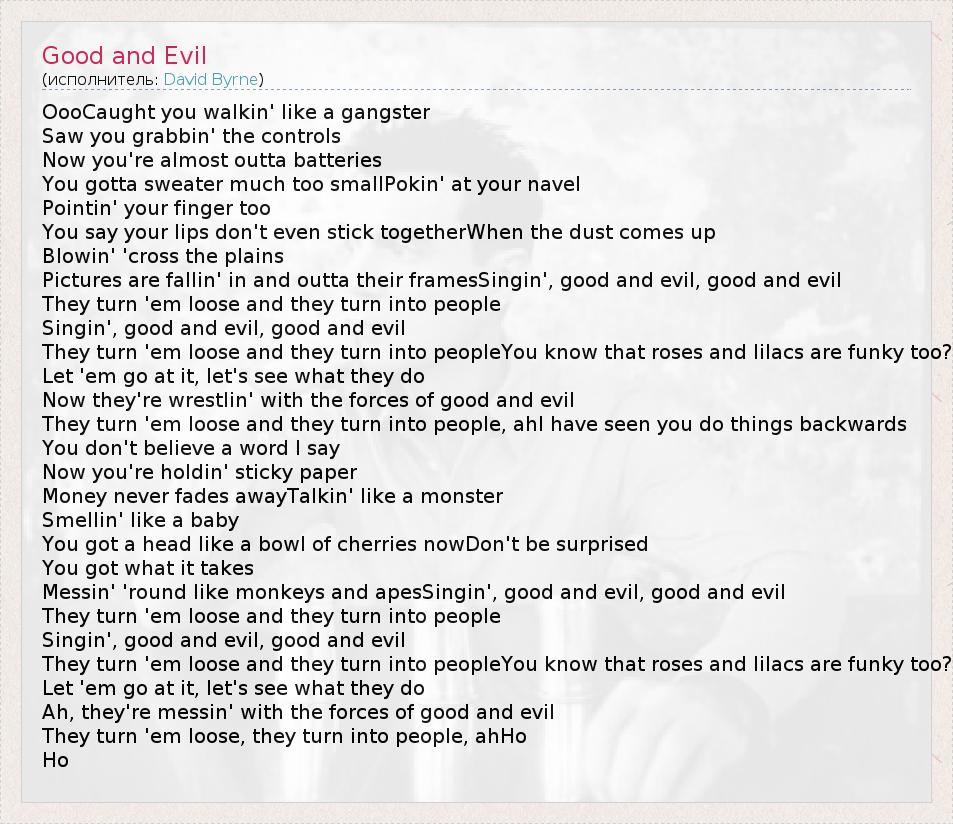 А как ты думаешь, о чем песня "Good and Evil" ?