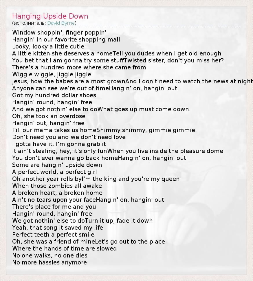 А как ты думаешь, о чем песня "Hanging Upside Down" ?