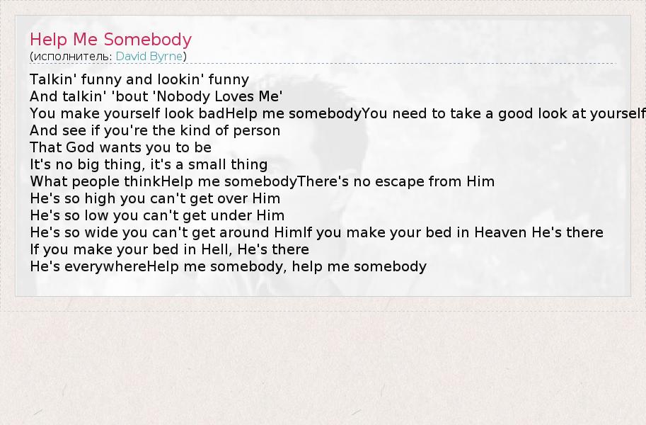 А как ты думаешь, о чем песня "Help Me Somebody" ?