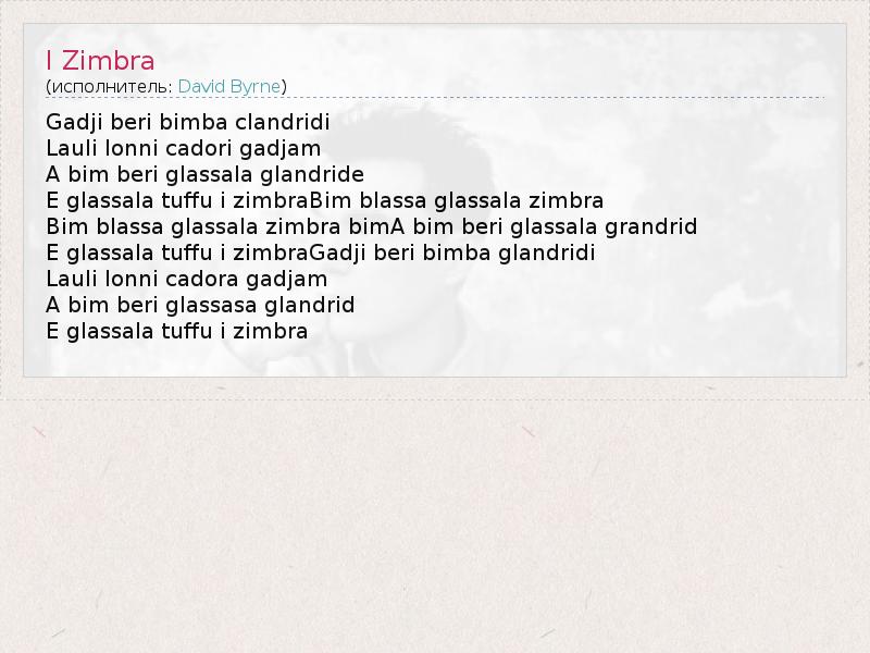 А как ты думаешь, о чем песня "I Zimbra" ?