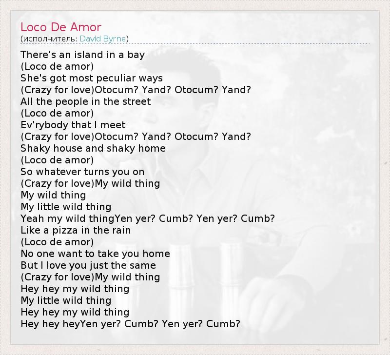 А как ты думаешь, о чем песня "Loco De Amor" ?