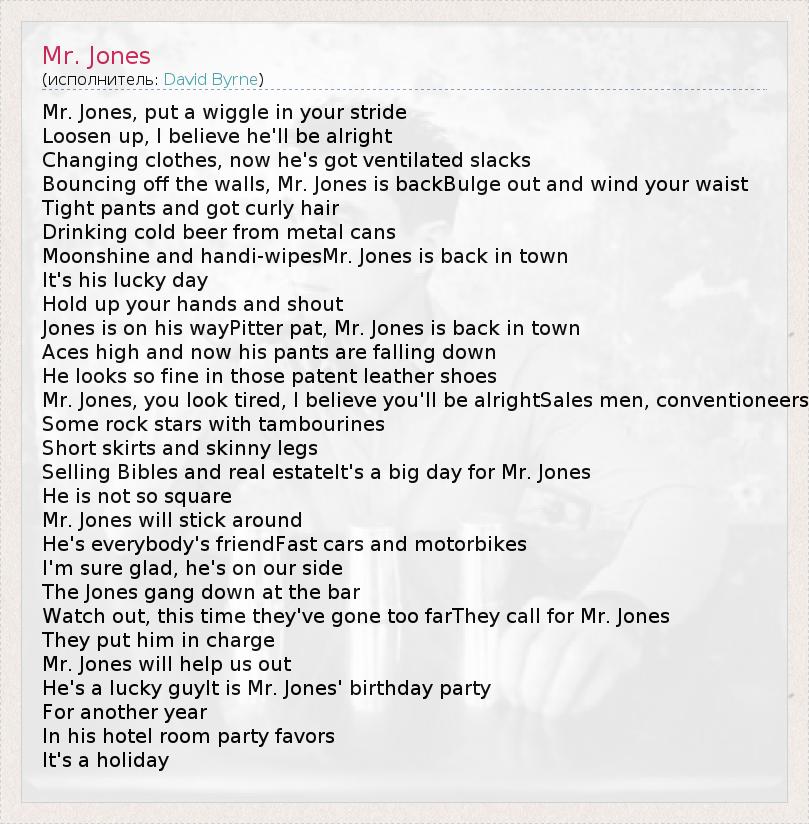 А как ты думаешь, о чем песня "Mr. Jones" ?