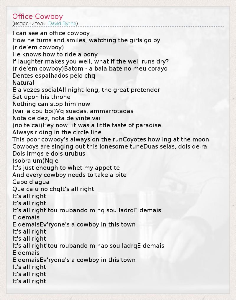 А как ты думаешь, о чем песня "Office Cowboy" ?
