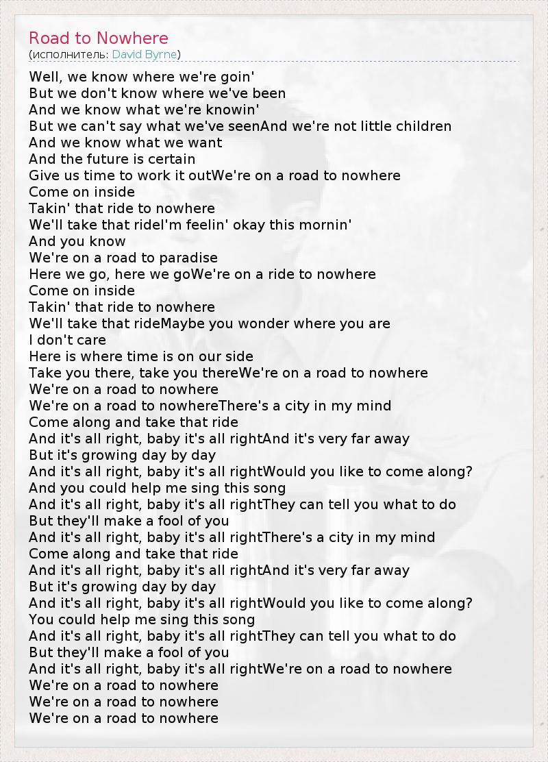 А как ты думаешь, о чем песня "Road to Nowhere" ?