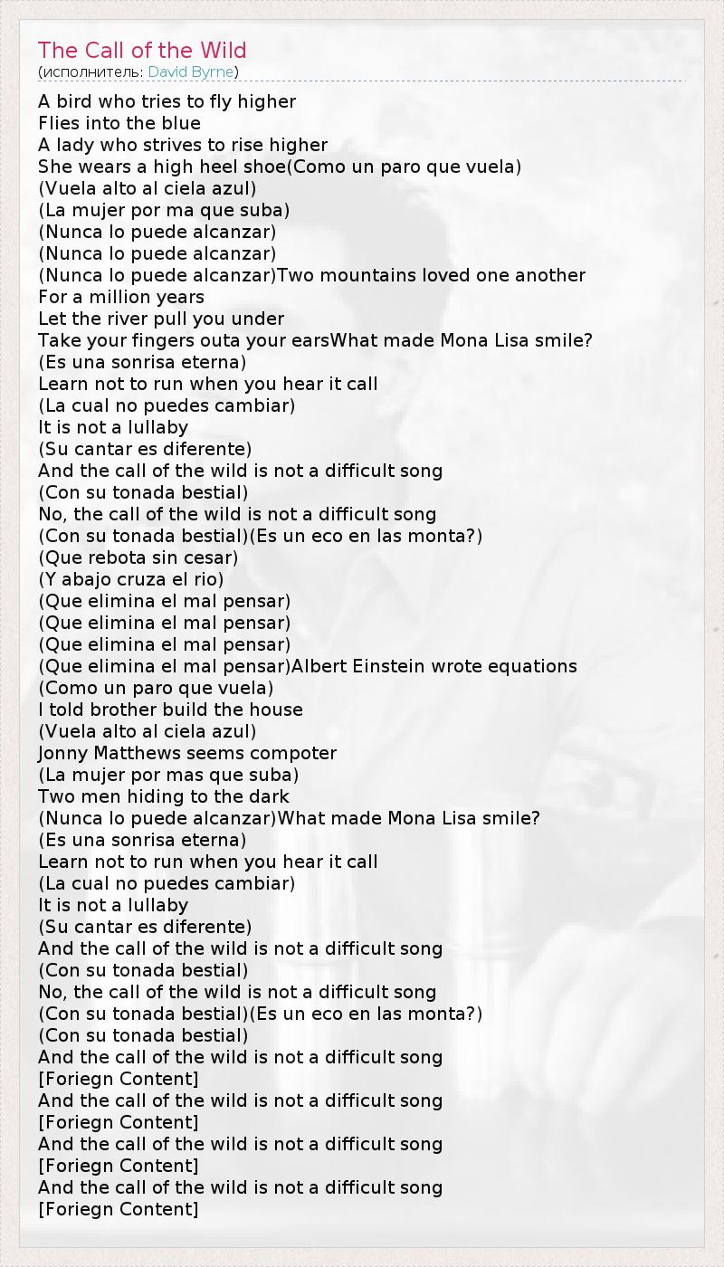 А как ты думаешь, о чем песня "The Call of the Wild" ?