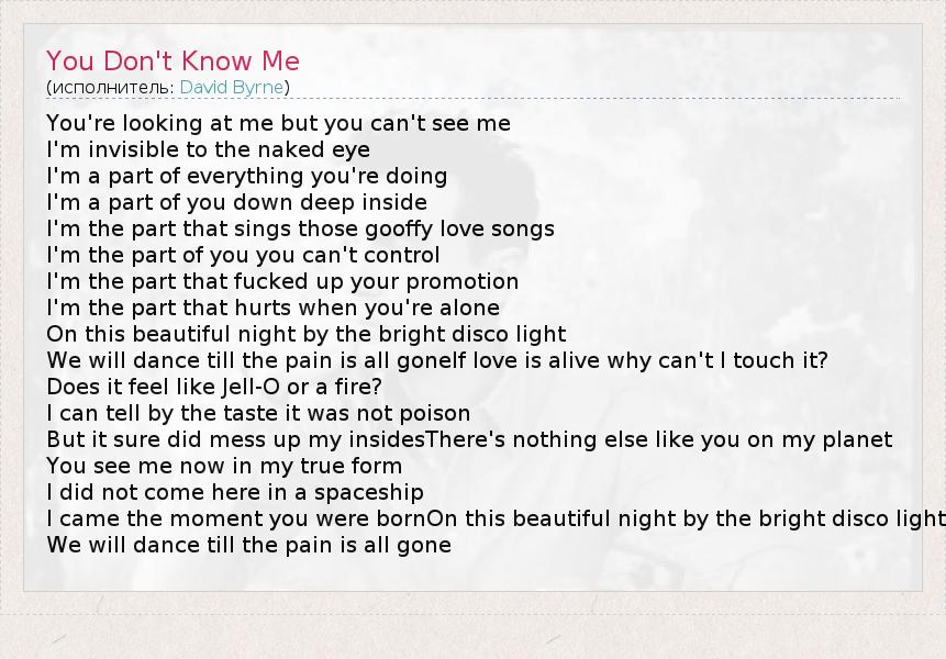 А как ты думаешь, о чем песня "You Don't Know Me" ?