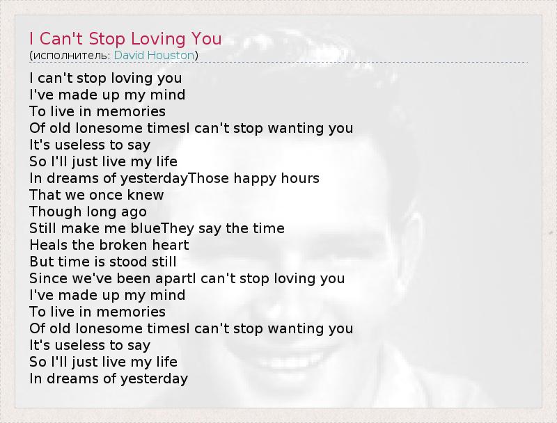 А как ты думаешь, о чем песня "I Can't Stop Loving You" ?