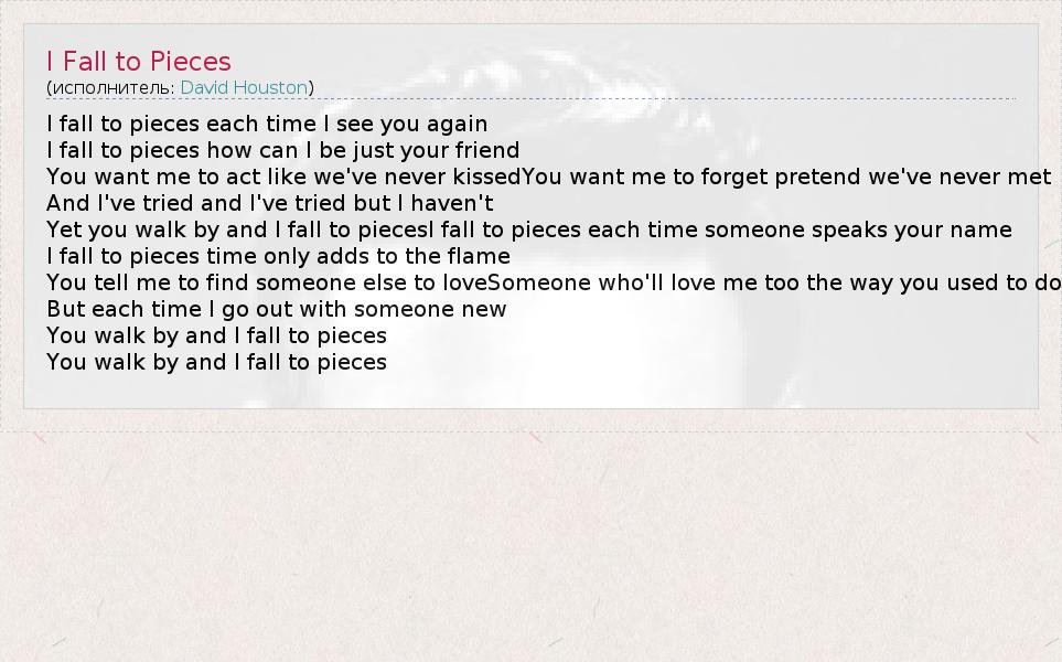 А как ты думаешь, о чем песня "I Fall to Pieces" ?