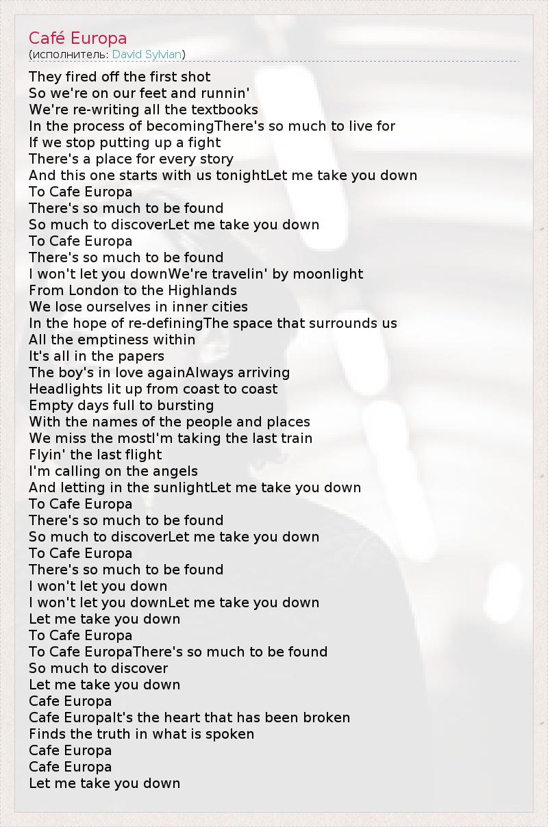 А как ты думаешь, о чем песня "Café Europa" ?