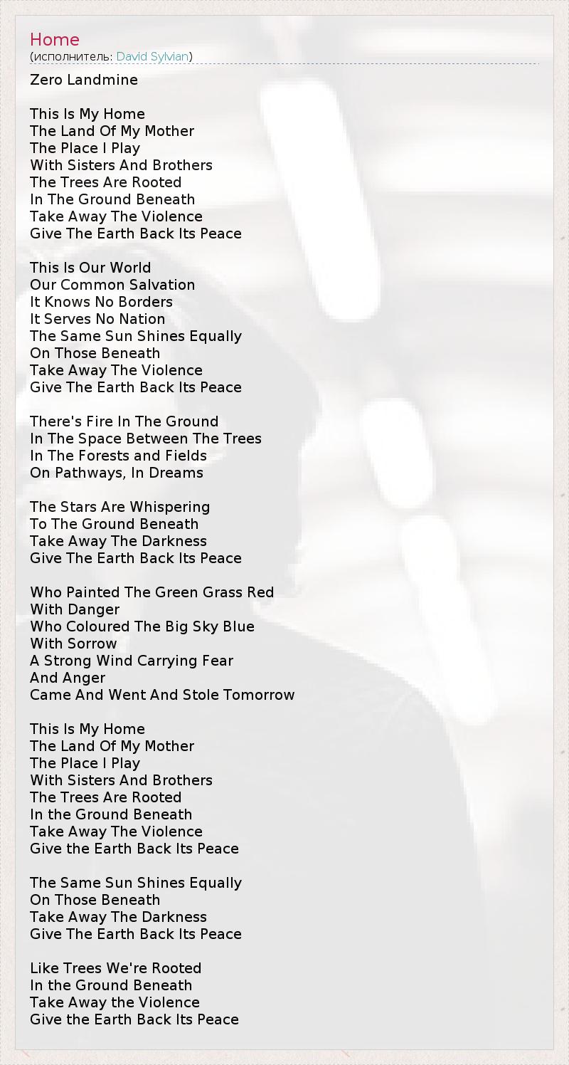 Это интересно:Дэвид Силвиан (англ. David Sylvian, наст. имя — Дэвид Алан Батт, англ. David Alan Batt, 23 февраля 1958, Бекенгем) — британский музыкант, вокалист и автор песен, начинавший карьеру в рок-группе новой волны Japan, затем успешно занялся сольной карьерой, работая над музыкой разных жанров: прогрессивный рок, джаз, электронная музыка, эмбиент.Кто такой Дэвид Сильвиан (David Sylvian), в двух словах не расскажешь. Певец,... продолжение