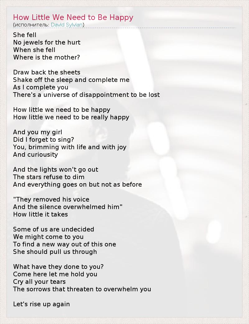 ГлавнаяИсполнителиDavid SylvianHow Little We Need to Be Happy