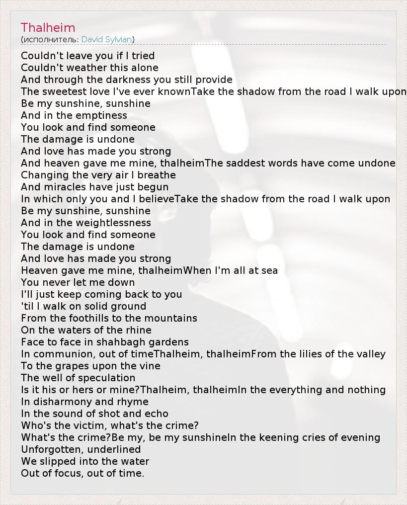 And heaven gave me mine, thalheimThe saddest words have come undone