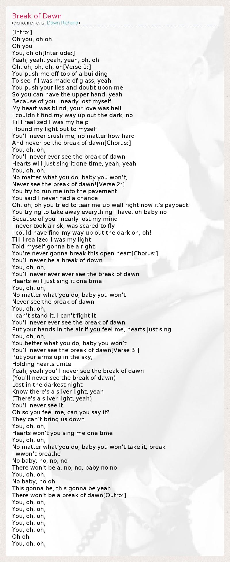 А как ты думаешь, о чем песня "Break of Dawn" ?