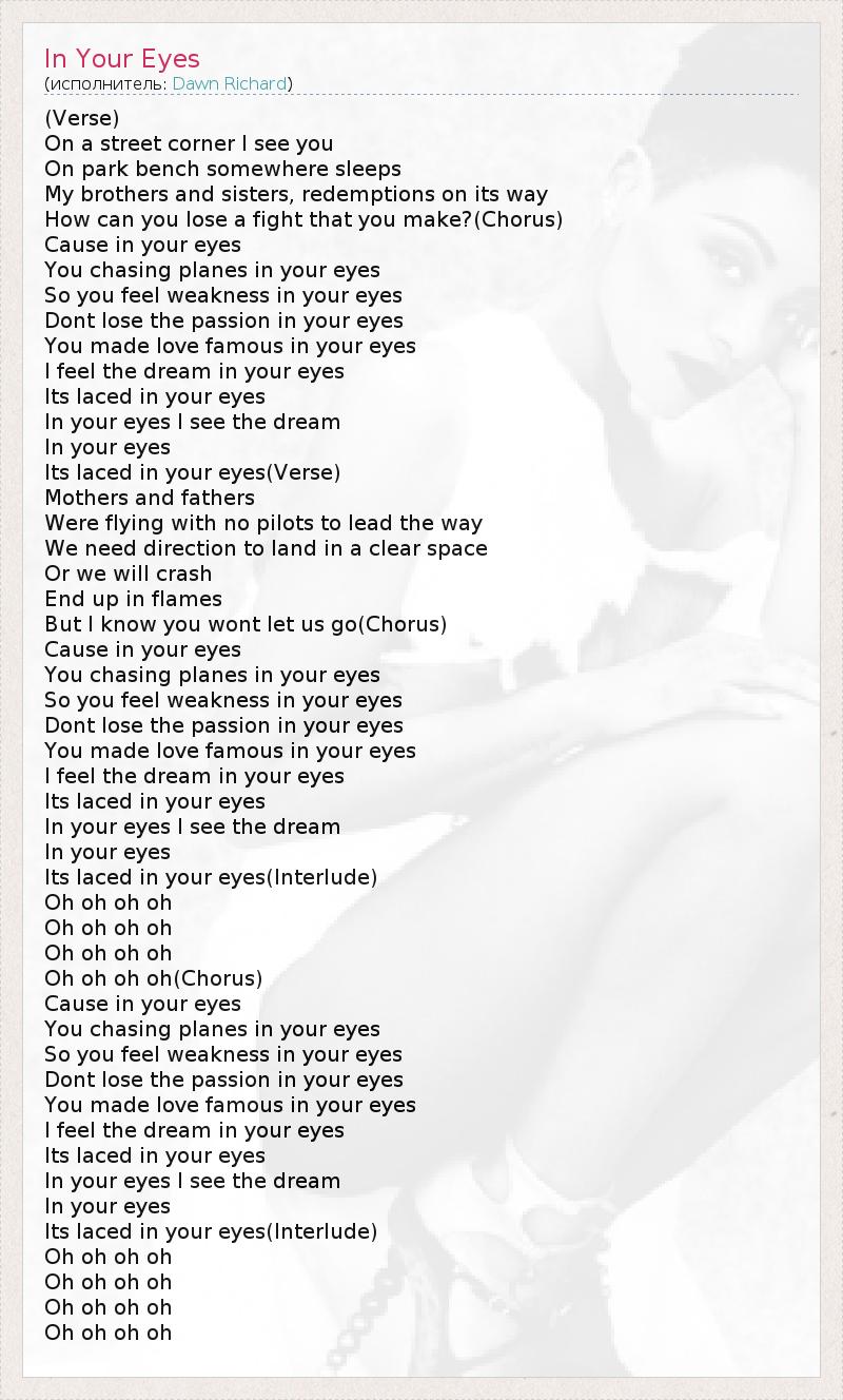 А как ты думаешь, о чем песня "In Your Eyes" ?