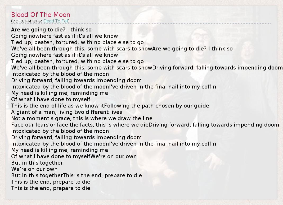 А как ты думаешь, о чем песня "Blood Of The Moon" ?