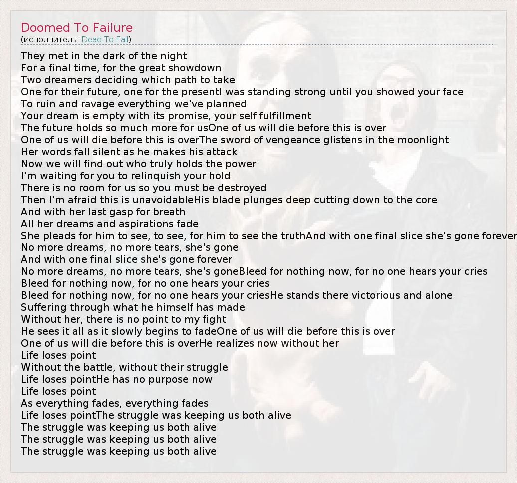 А как ты думаешь, о чем песня "Doomed To Failure" ?