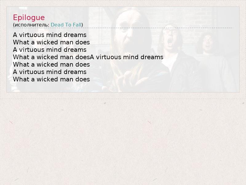 Это интересно:Dead to Fall образовалась в Чикаго в 1999 году. Состав участников менялся на протяжении всего существования группы. В 2000 были сделаны две демо-записи, а с полноформатным альбомом парни дебютировали в 2002 году на Victory Records. Dead to Fall смешала хеви метал, хардкор и, вдохновившись шведской сценой, мелодик дез метал, все это приправив текстами о личных переживаниях. Постоянно меняя участников, группа на... продолжение