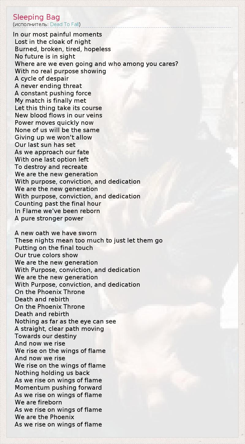 Это интересно:Dead to Fall образовалась в Чикаго в 1999 году. Состав участников менялся на протяжении всего существования группы. В 2000 были сделаны две демо-записи, а с полноформатным альбомом парни дебютировали в 2002 году на Victory Records. Dead to Fall смешала хеви метал, хардкор и, вдохновившись шведской сценой, мелодик дез метал, все это приправив текстами о личных переживаниях. Постоянно меняя участников, группа на... продолжение
