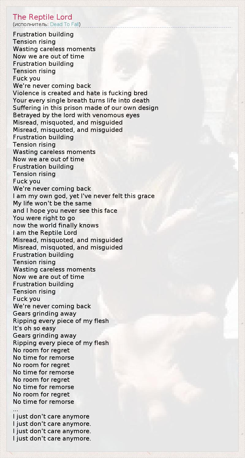 А как ты думаешь, о чем песня "The Reptile Lord" ?
