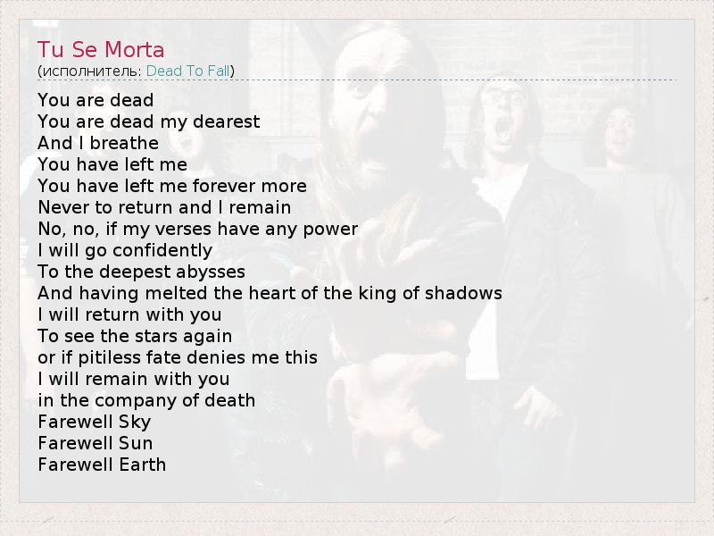 А как ты думаешь, о чем песня "Tu Se Morta" ?