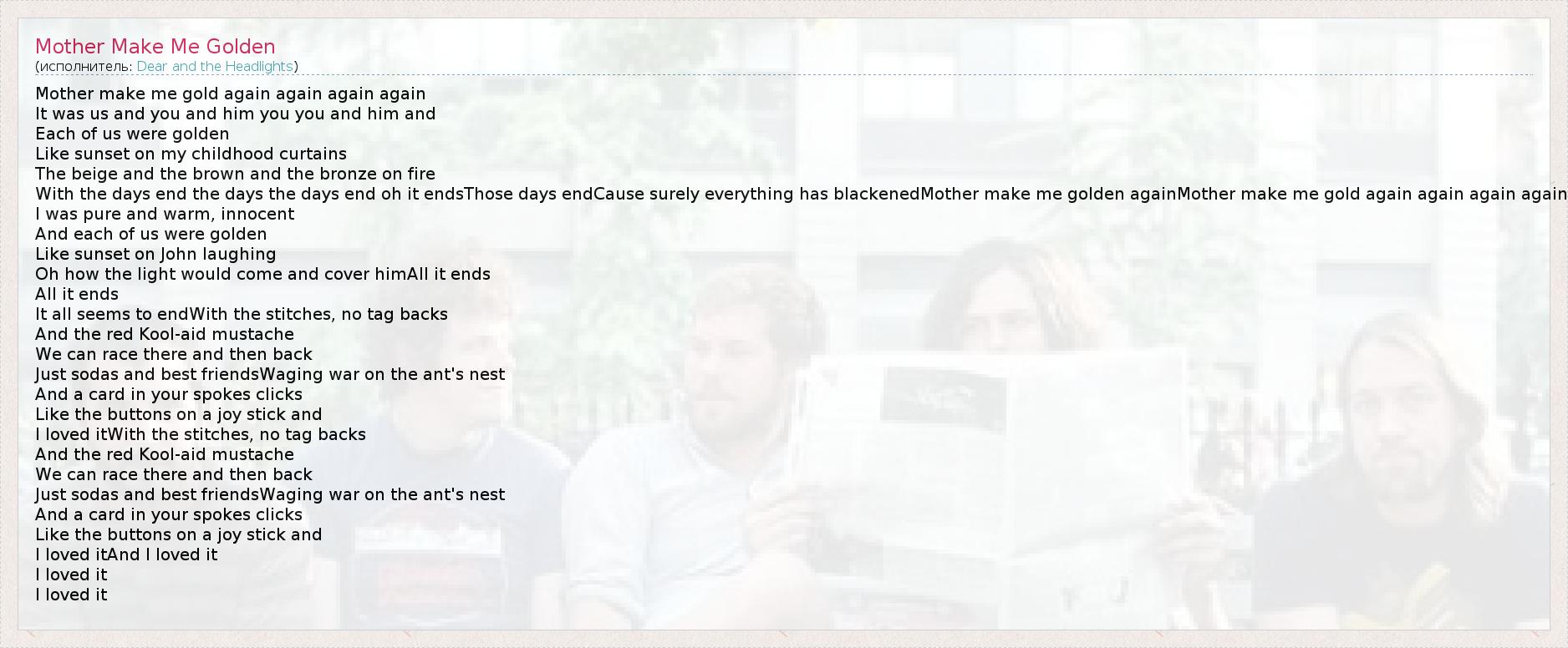 А как ты думаешь, о чем песня "Mother Make Me Golden" ?
