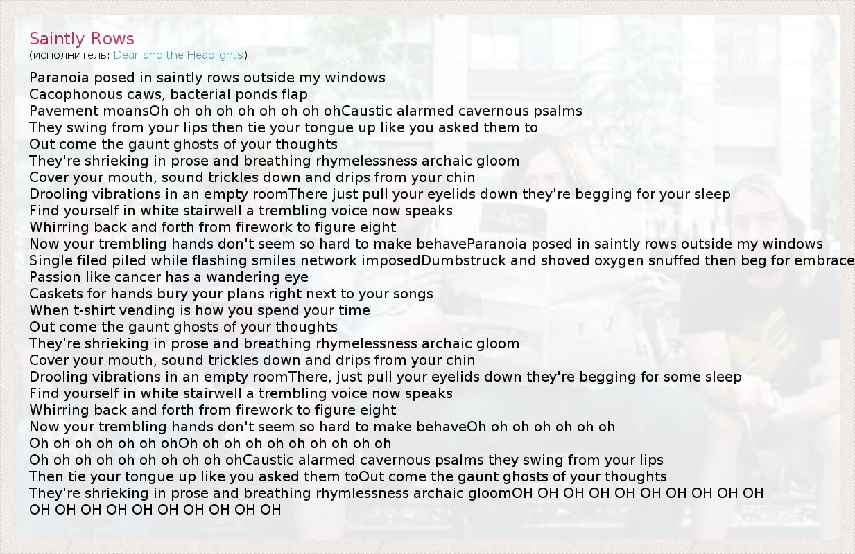 А как ты думаешь, о чем песня "Saintly Rows" ?
