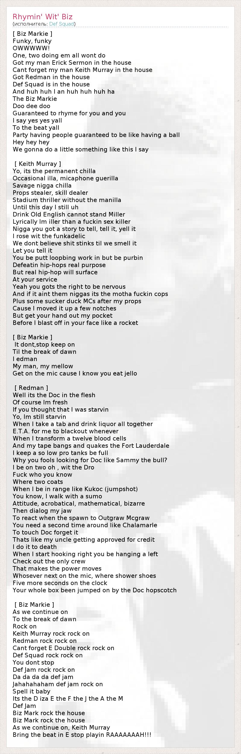 А как ты думаешь, о чем песня "Rhymin' Wit' Biz" ?