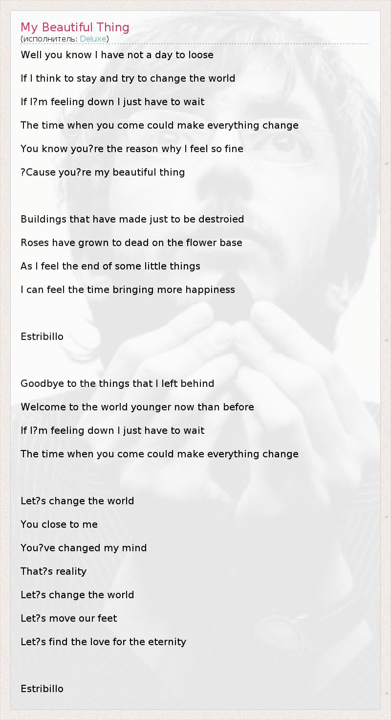 А как ты думаешь, о чем песня "My Beautiful Thing" ?