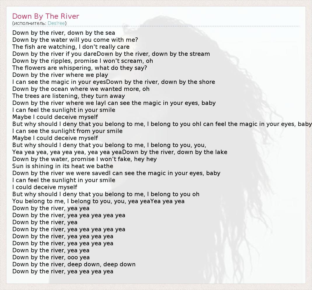 Yea yea yea, yea yea yea, yea yea yeaDown by the river, down by the lake