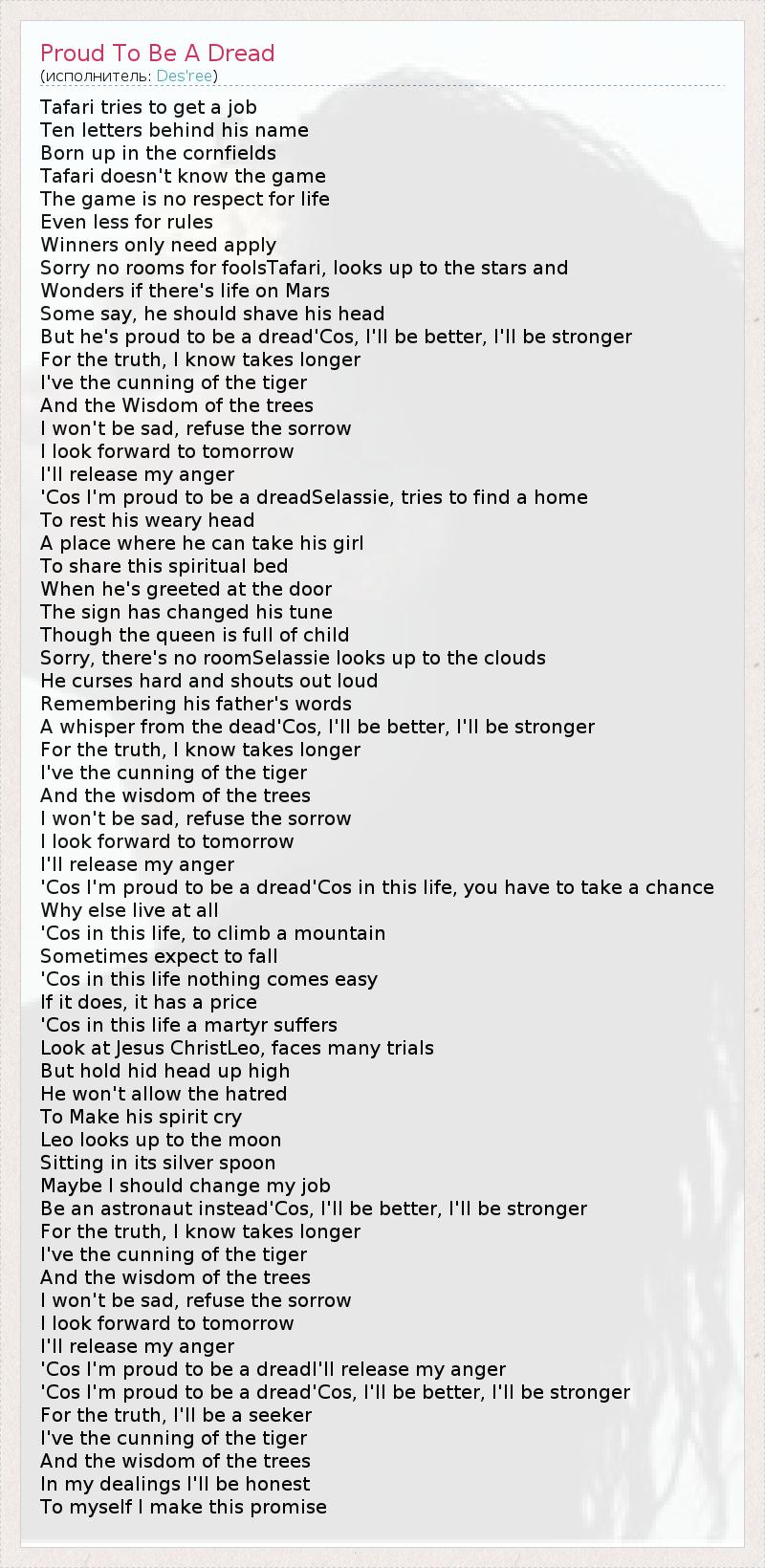 А как ты думаешь, о чем песня "Proud To Be A Dread" ?