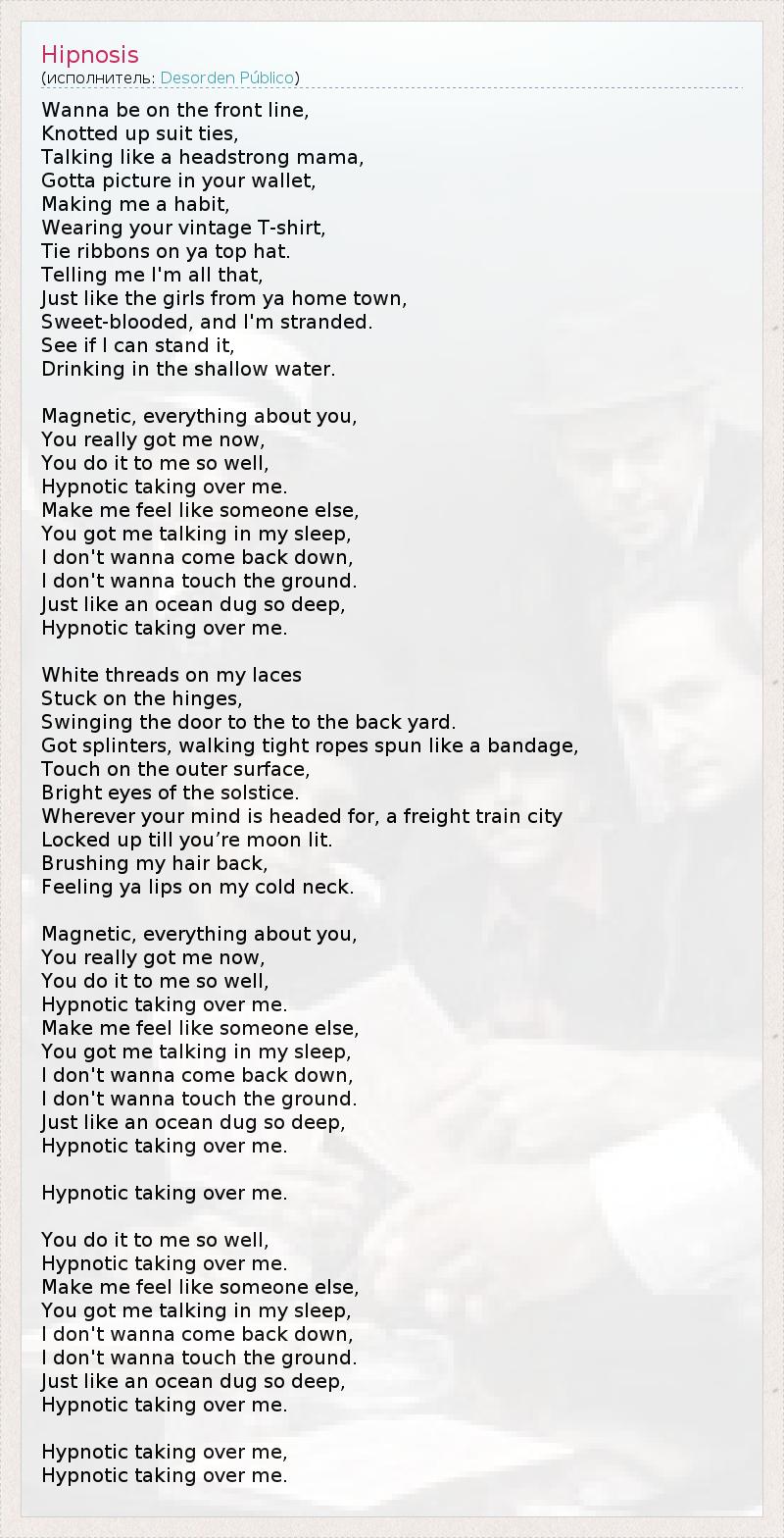 А как ты думаешь, о чем песня "Hipnosis" ?