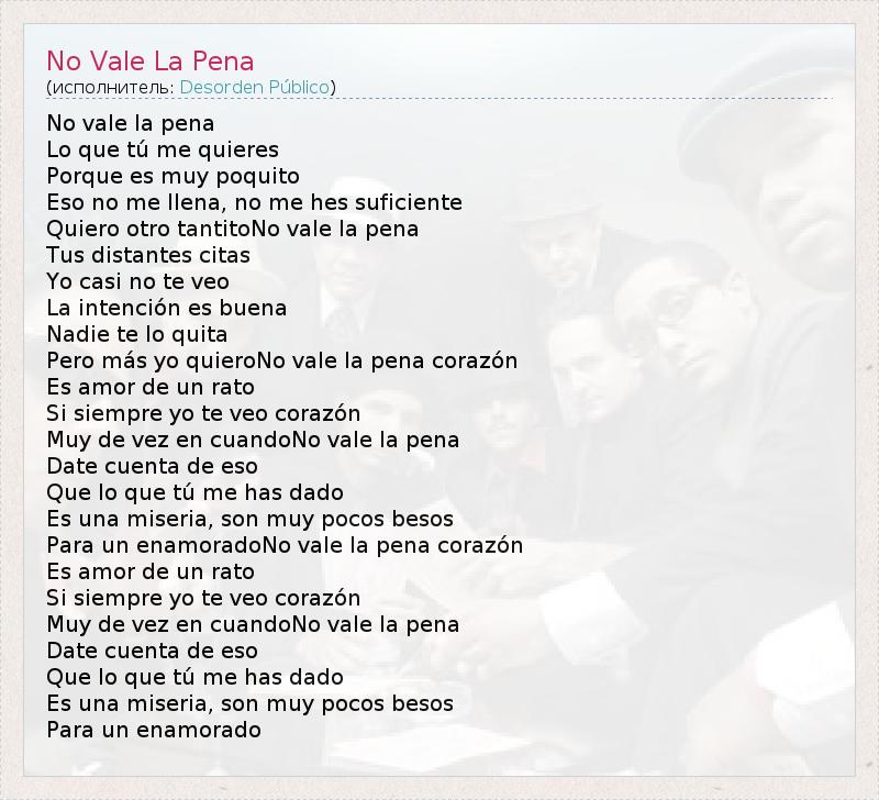 А как ты думаешь, о чем песня "No Vale La Pena" ?