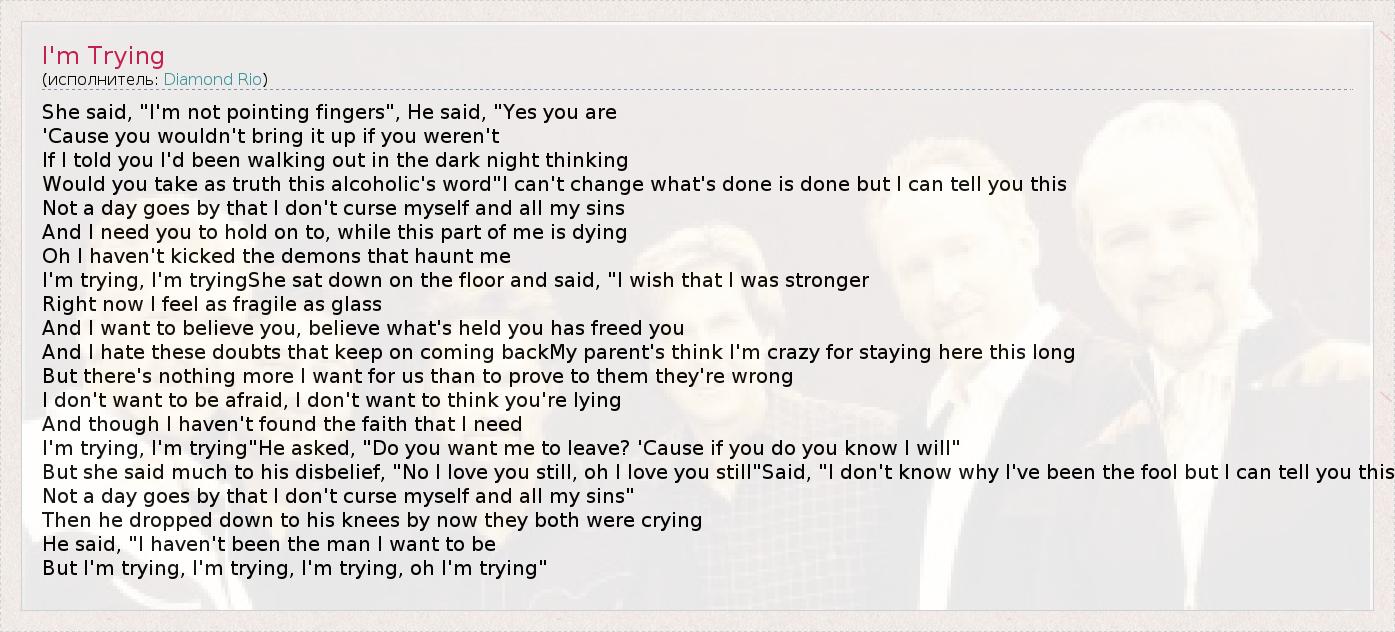 But I'm trying, I'm trying, I'm trying, oh I'm trying"
