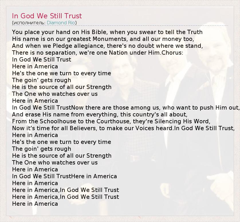 А как ты думаешь, о чем песня "In God We Still Trust" ?