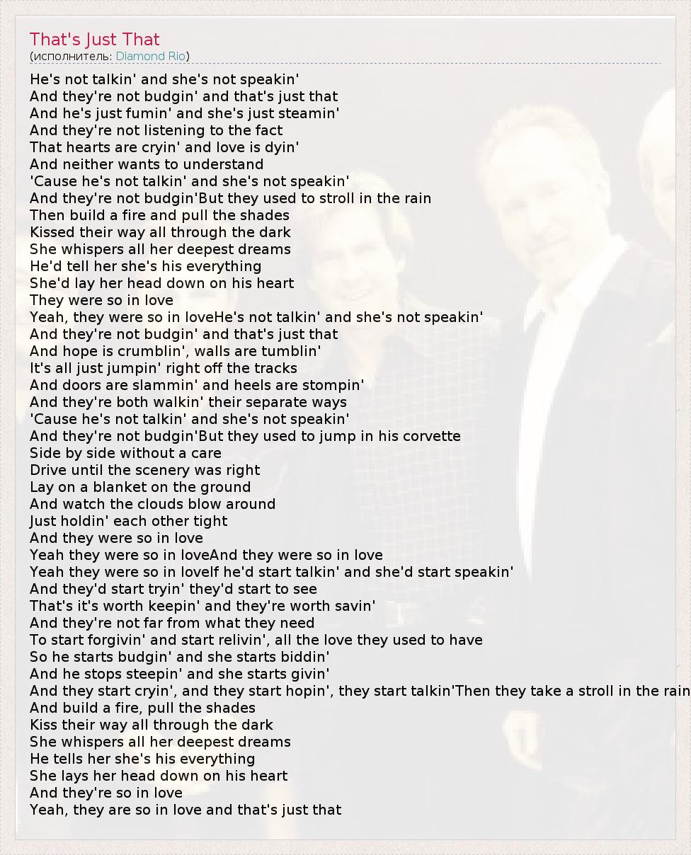 Yeah, they were so in loveHe's not talkin' and she's not speakin'