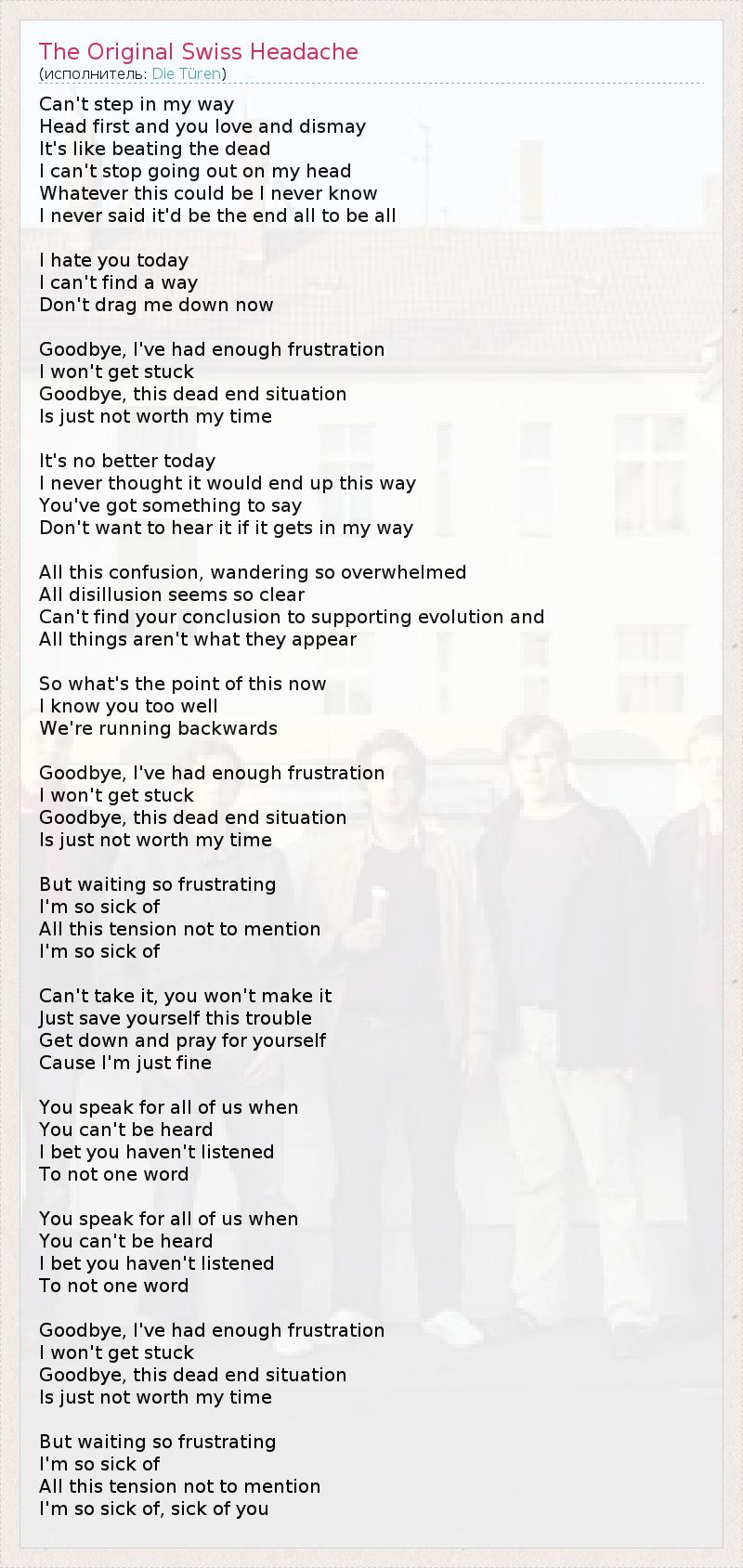 А как ты думаешь, о чем песня "The Original Swiss Headache" ?