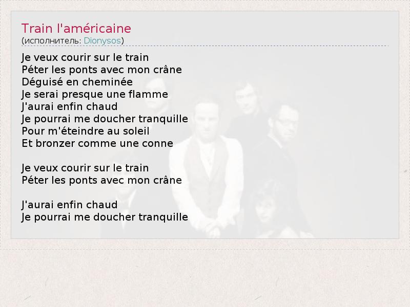 А как ты думаешь, о чем песня "Train l'américaine" ?