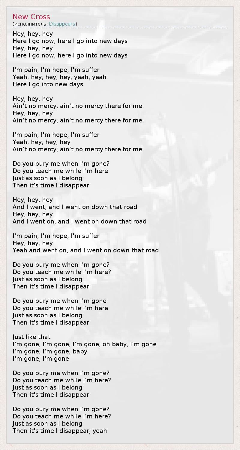 Это интересно:Disappears is a rock band from Chicago formed in 2008. The band plays a mixture of shoegaze, krautrock and garage rock.The band was formed by Brian Case (ex-90 Day Men) and Graeme Gibson and fleshed out with guitarist Jonathan Van Herik and bassist Damon Carruesco. They played Pitchfork Music Festival in 2009. In 2010 their debut album Lux was released on Kranky Records. After their second album Guider was released in 2011, Steve Shelley of Sonic Youth joined the band and the band went on tour through the US and Europe.Shelley left the group in 2012, citing touring scheduling conflicts. He was replaced by Noah Leger (Electric Hawk, Anatomy of Habit).