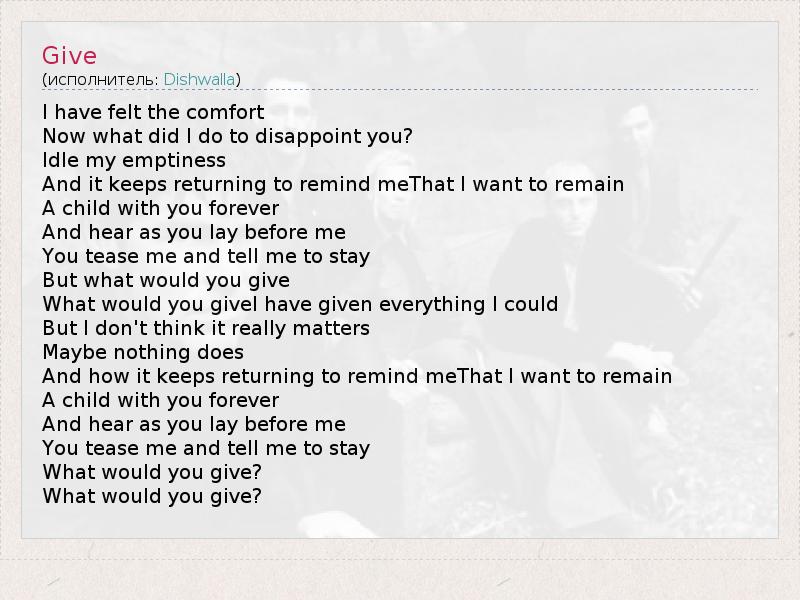 А как ты думаешь, о чем песня "Give" ?