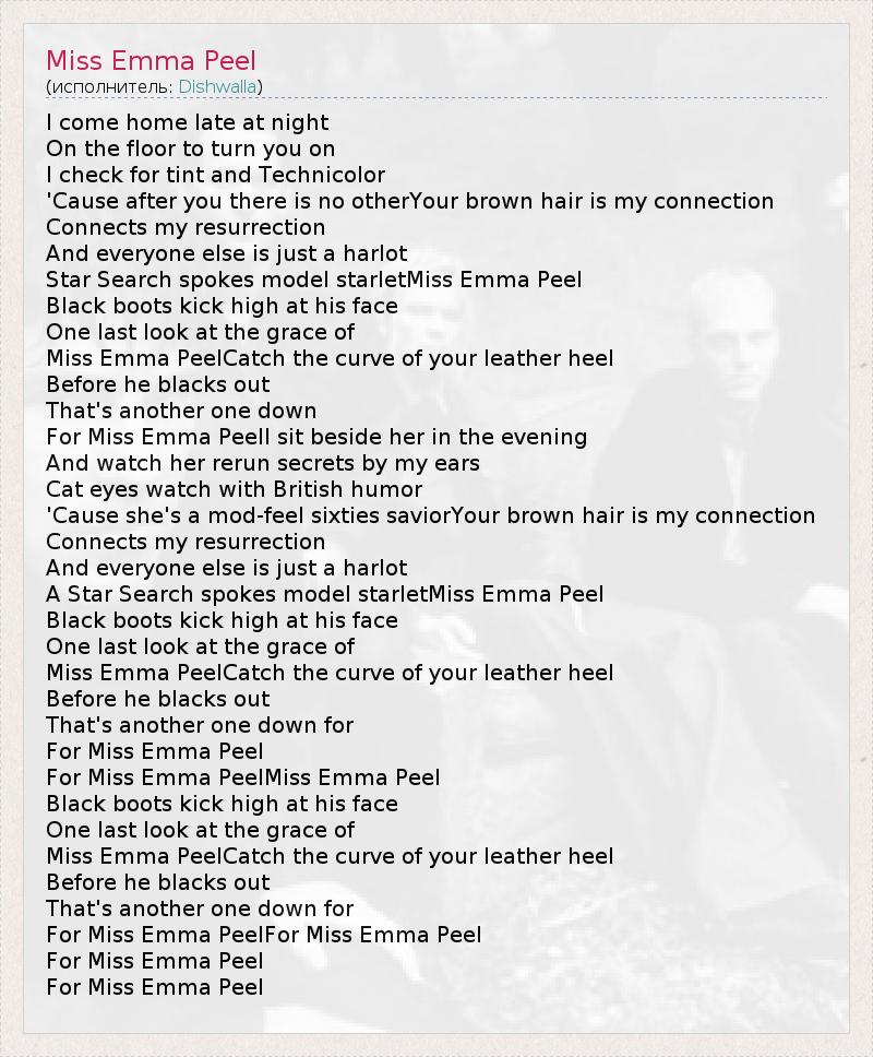 А как ты думаешь, о чем песня "Miss Emma Peel" ?