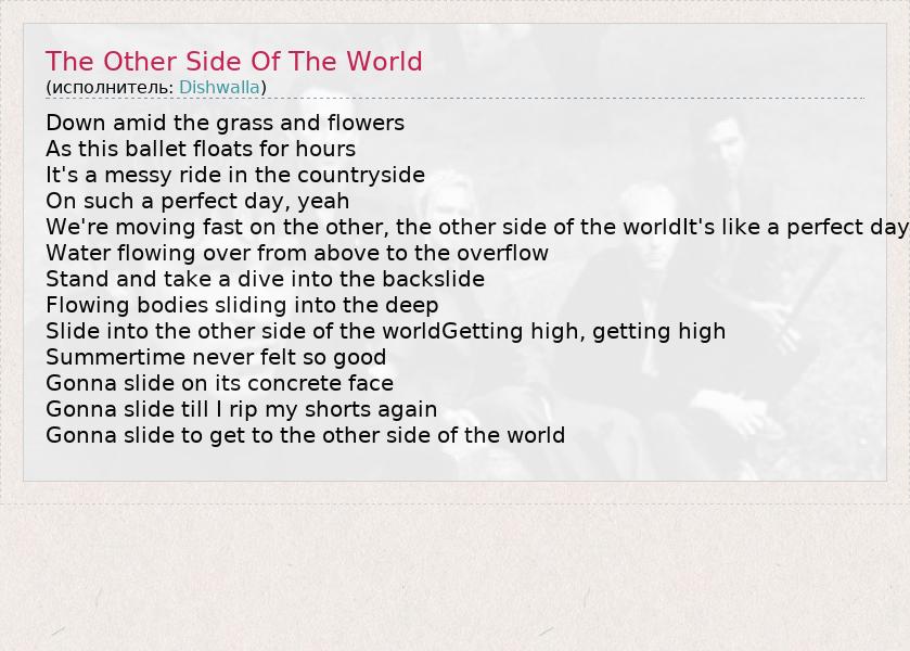 А как ты думаешь, о чем песня "The Other Side Of The World" ?