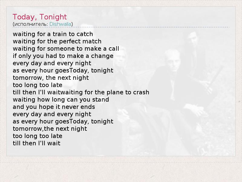 А как ты думаешь, о чем песня "Today, Tonight" ?